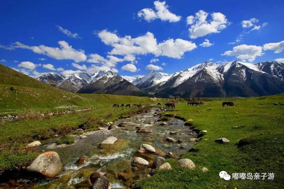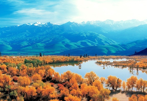 1、天山天池:湖光山色,美不胜收,被誉为“天山明珠”。